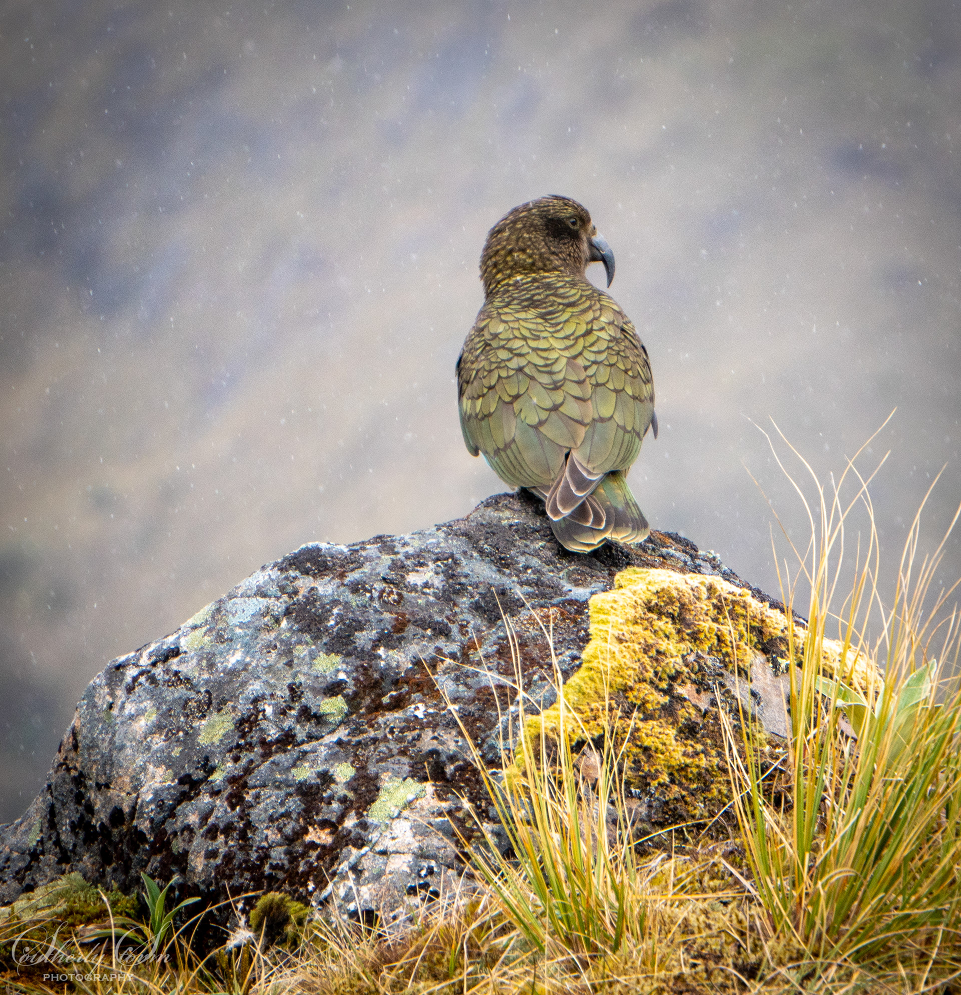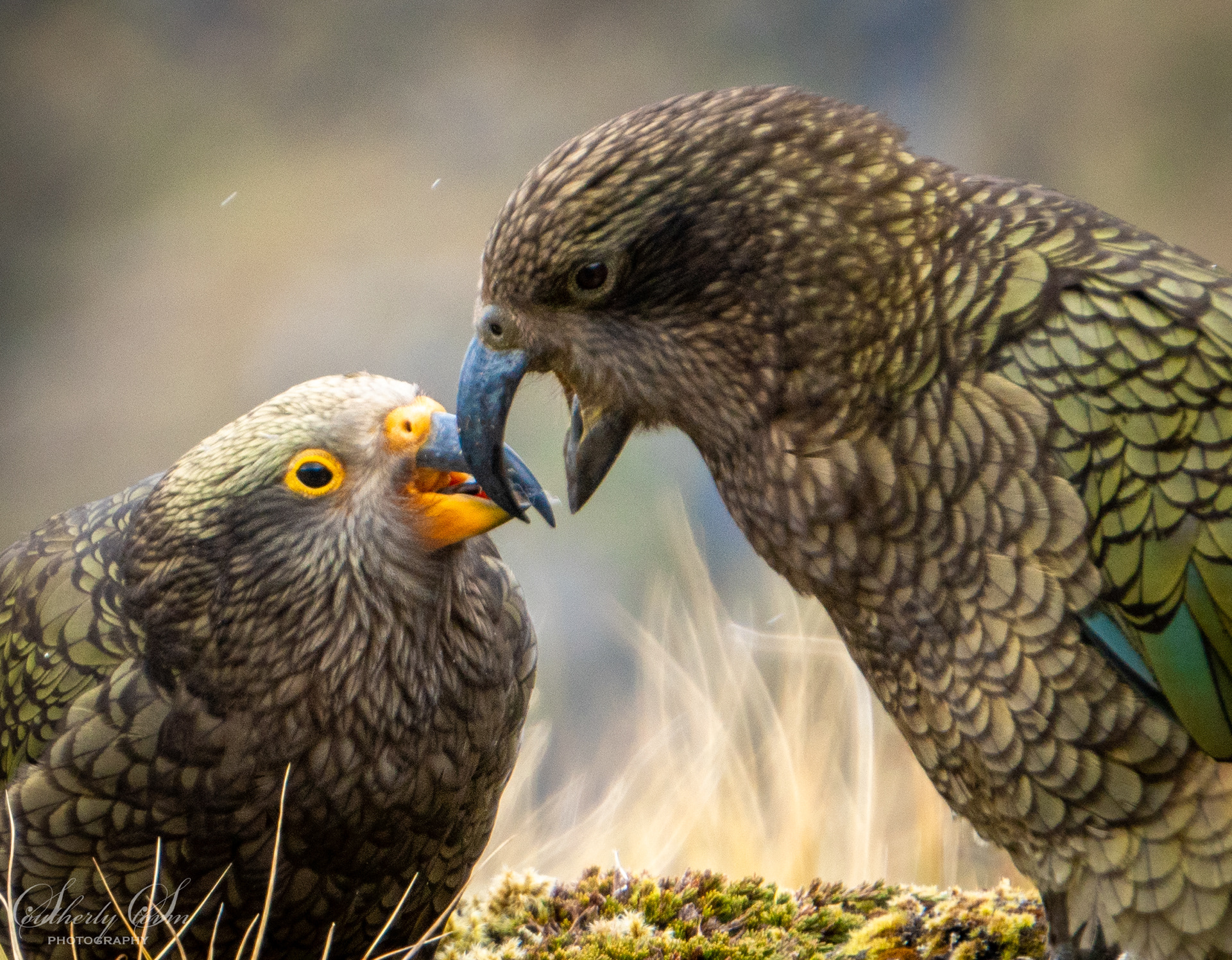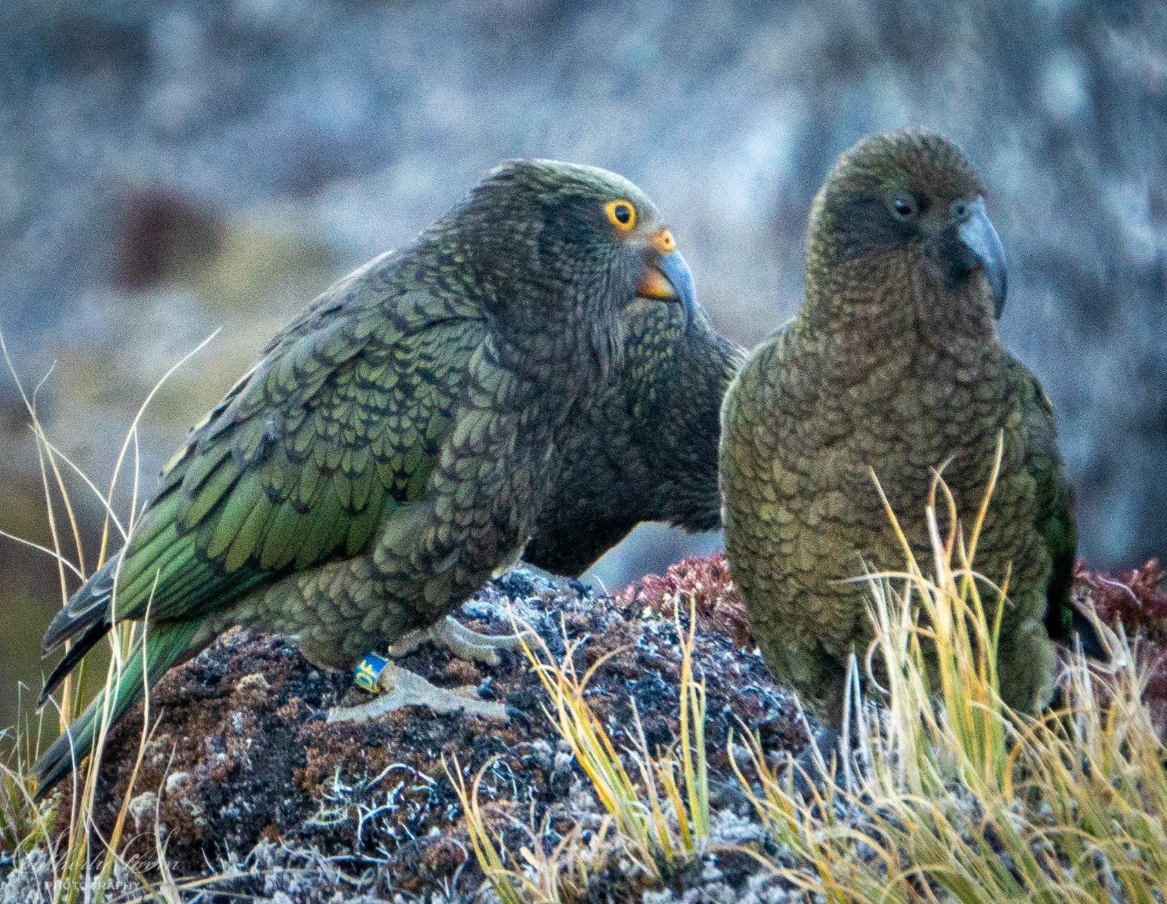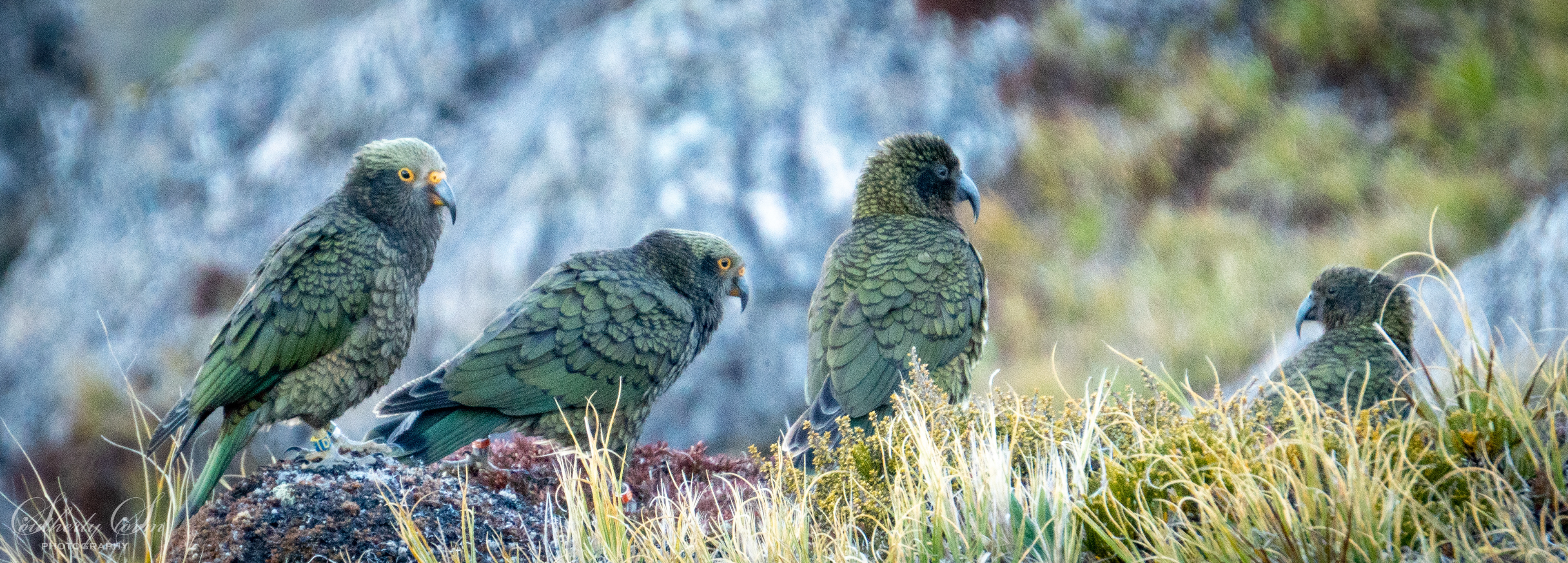 A group of kea - dad and two fledglings - colluding as to how best to destroy our tents