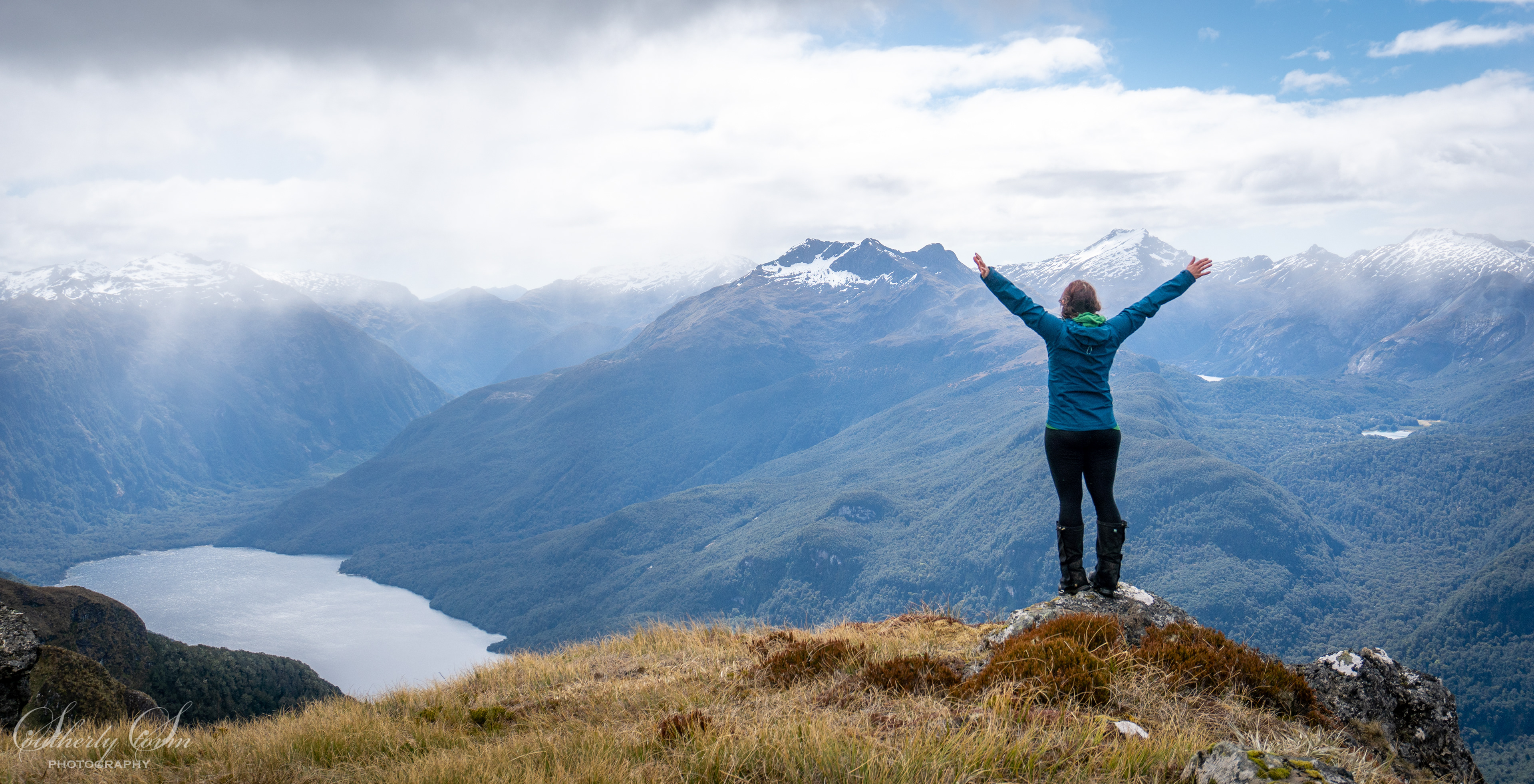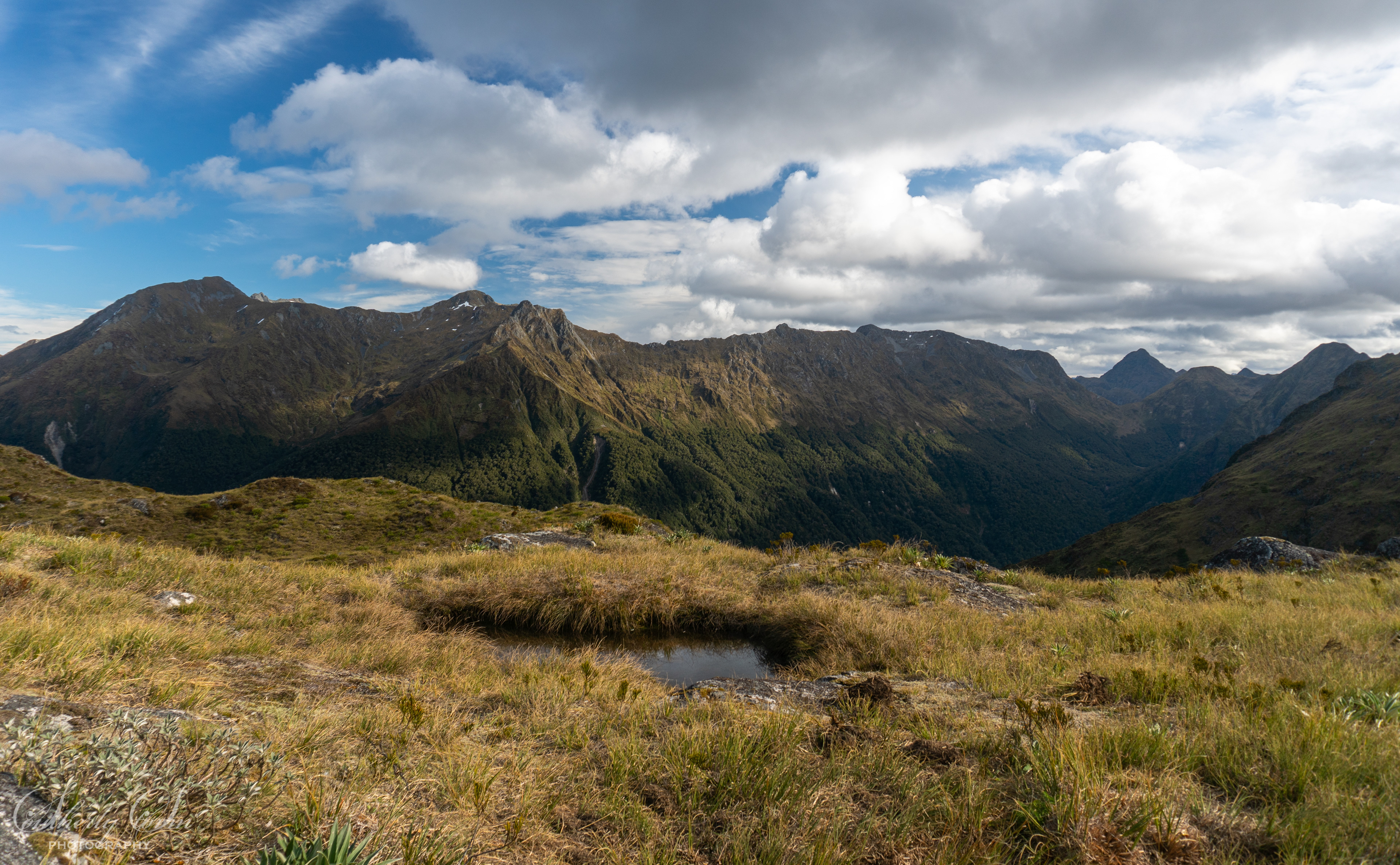 Panorama of Lake Te Anau and the Stuart Mountains from Miller Peak