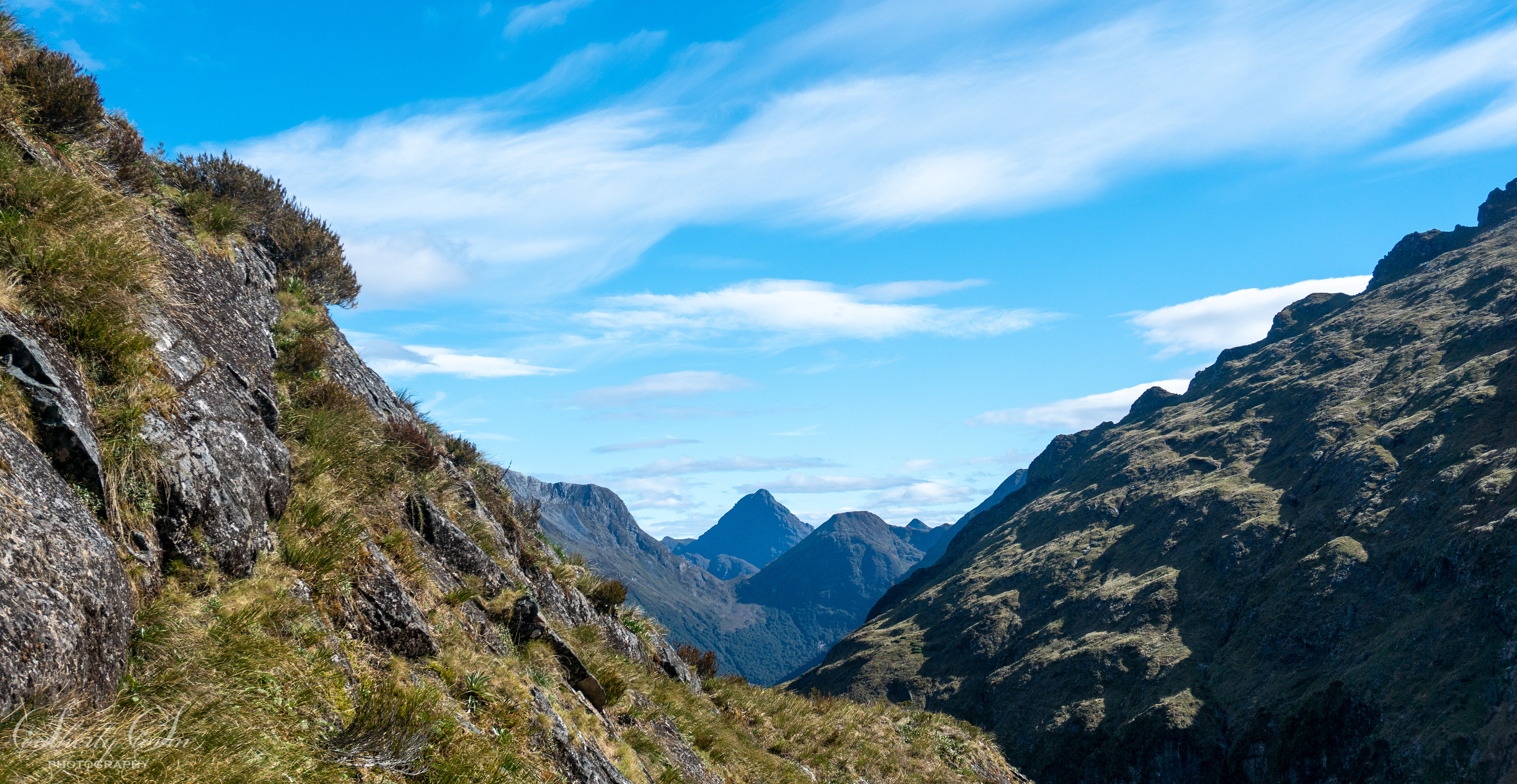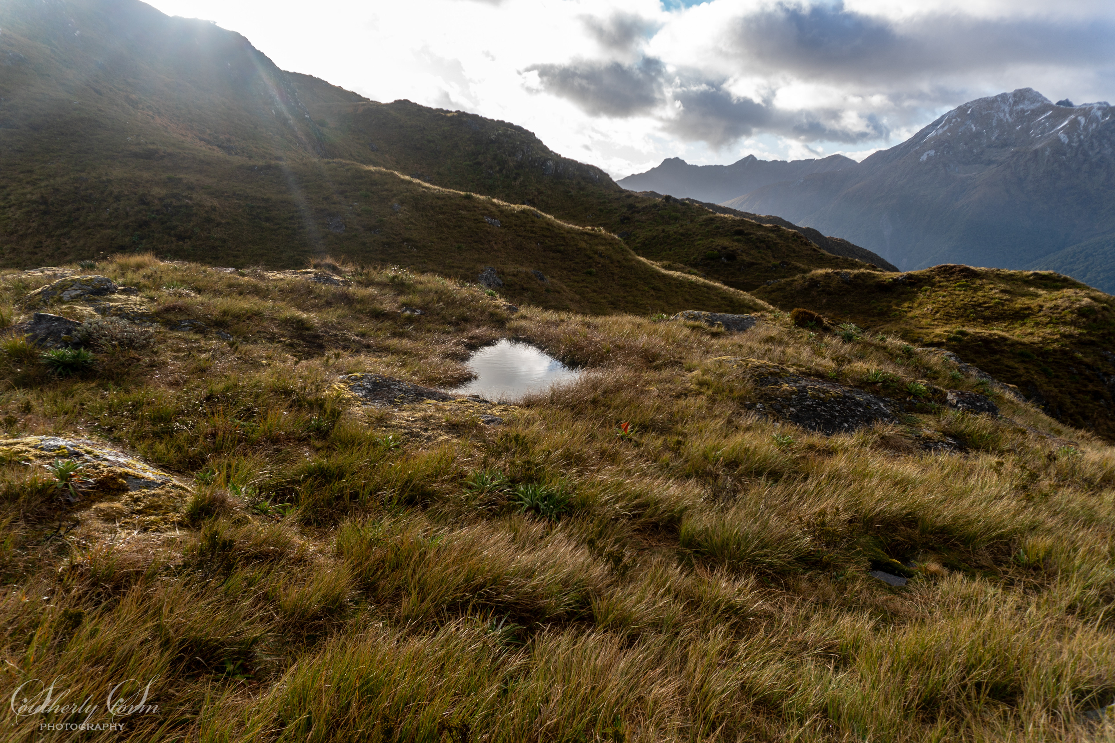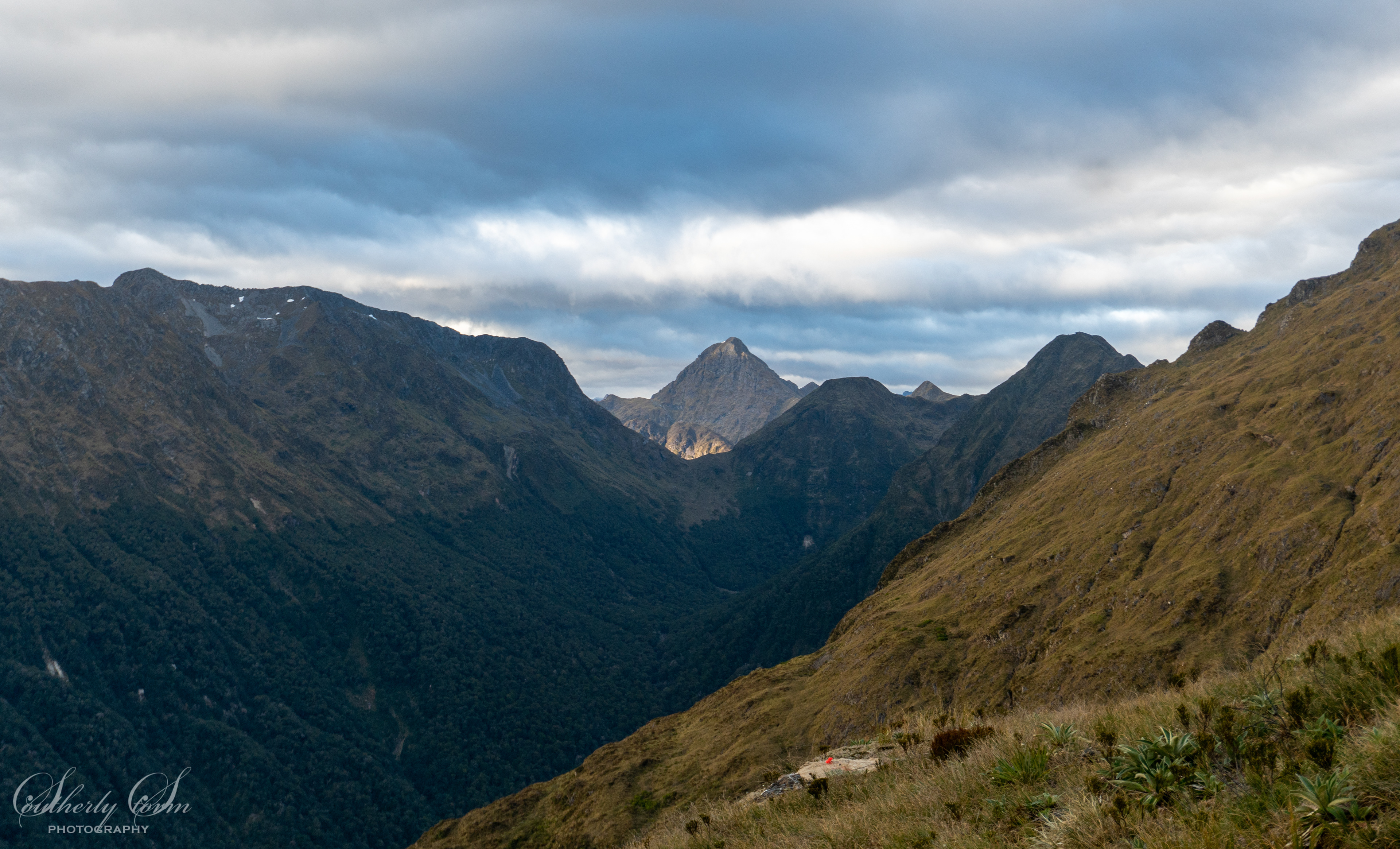 Heading into the bush for a short stretch before going back up into the basin visible straight ahead