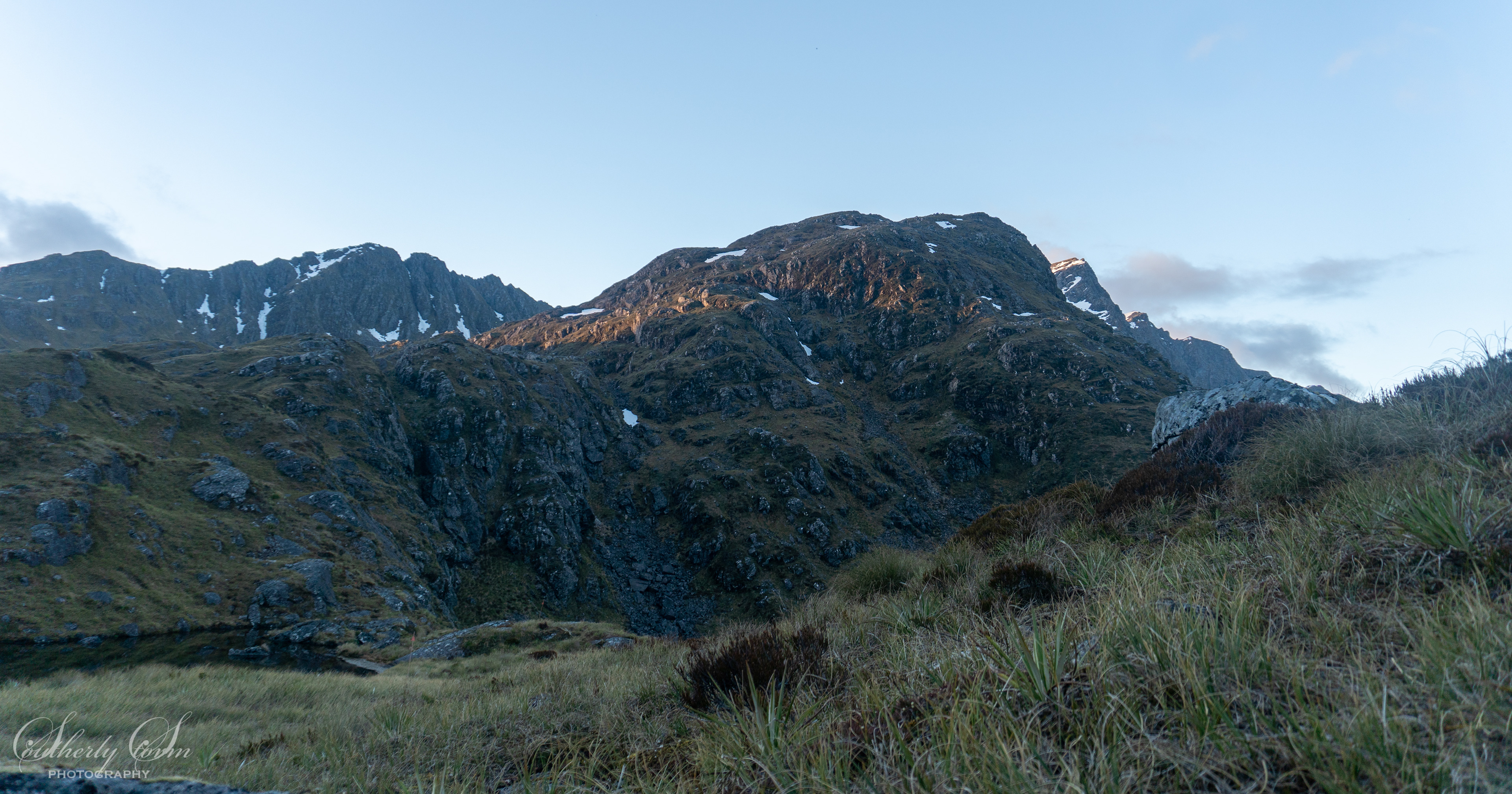 Lydia and Veronika look out over the Snag Burn, our lake campsite in the background