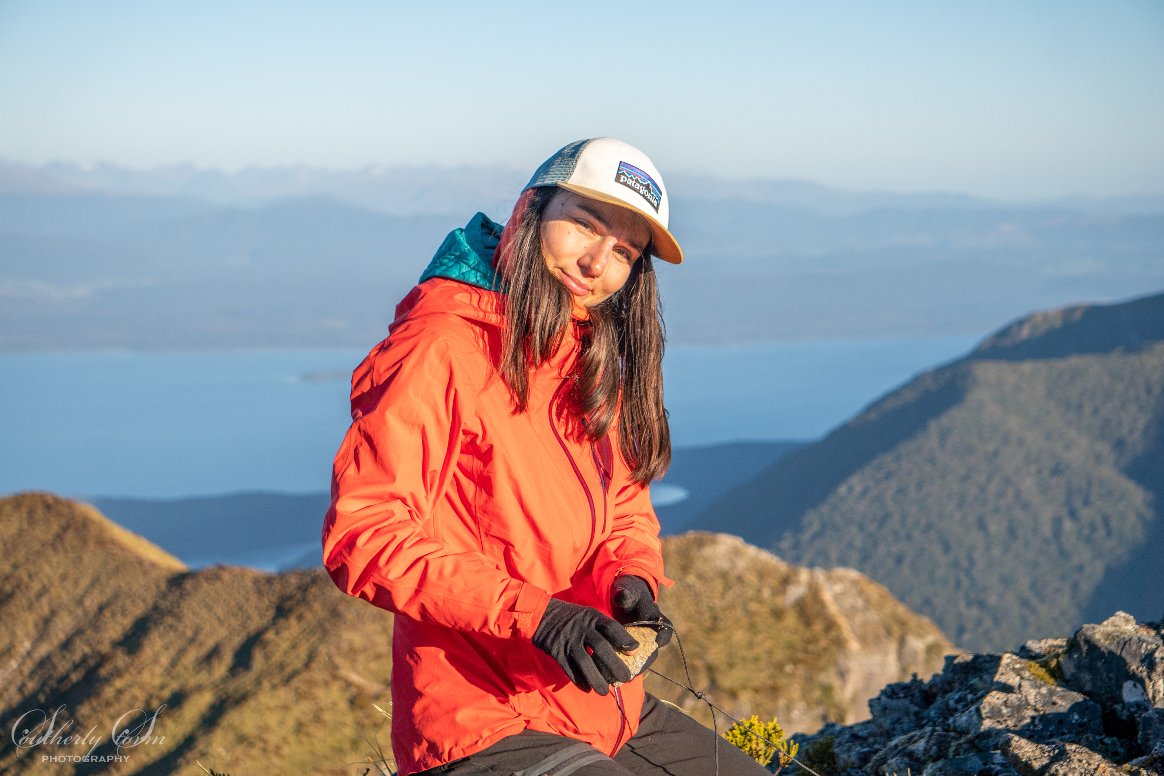 Lydia on Miller Peak checking for radio signals from birds in the area
